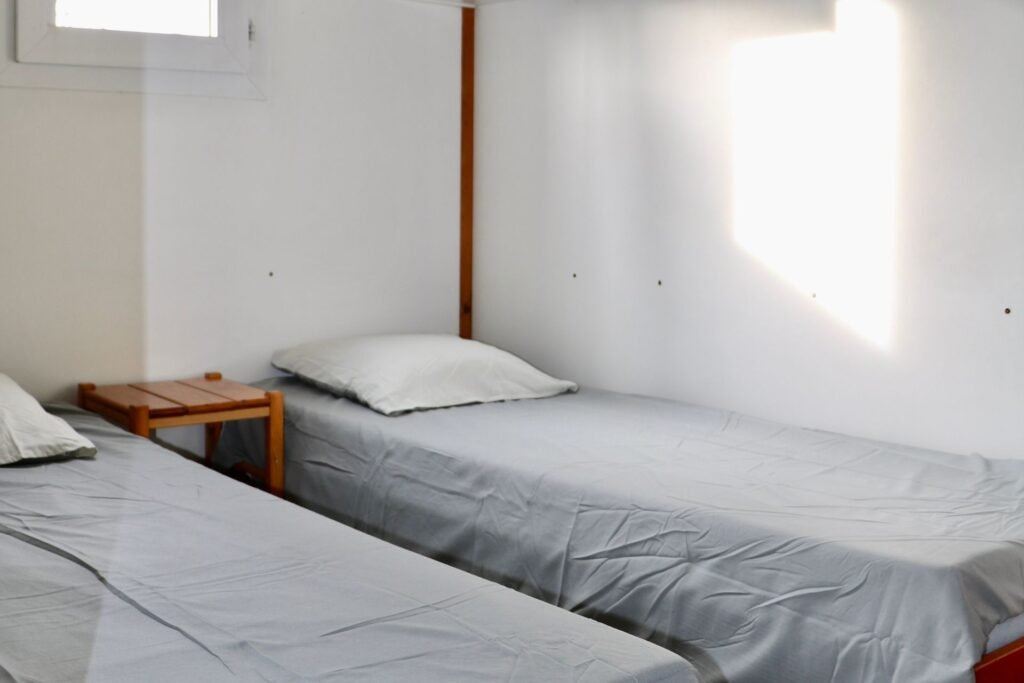 Une chambre avec deux lits simples